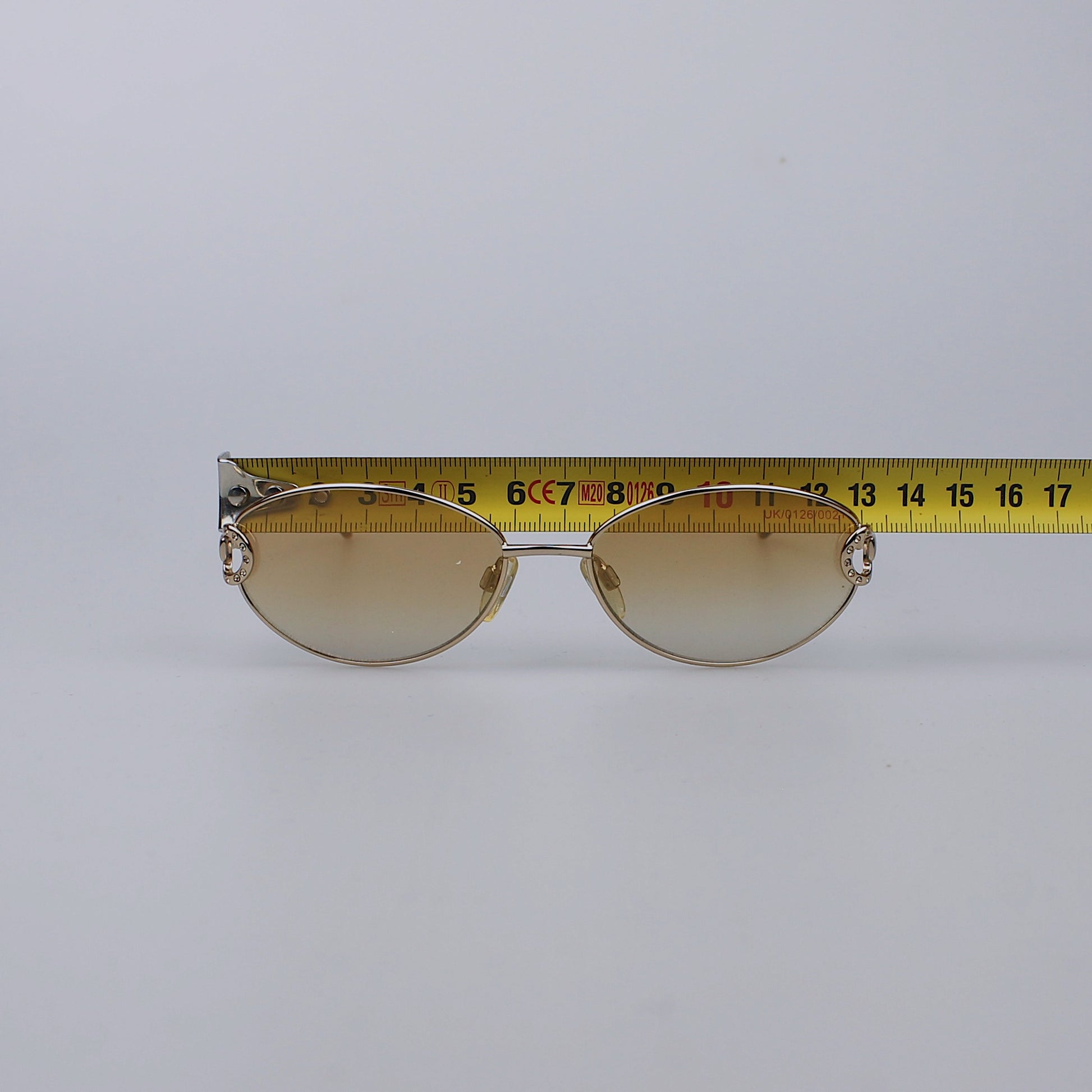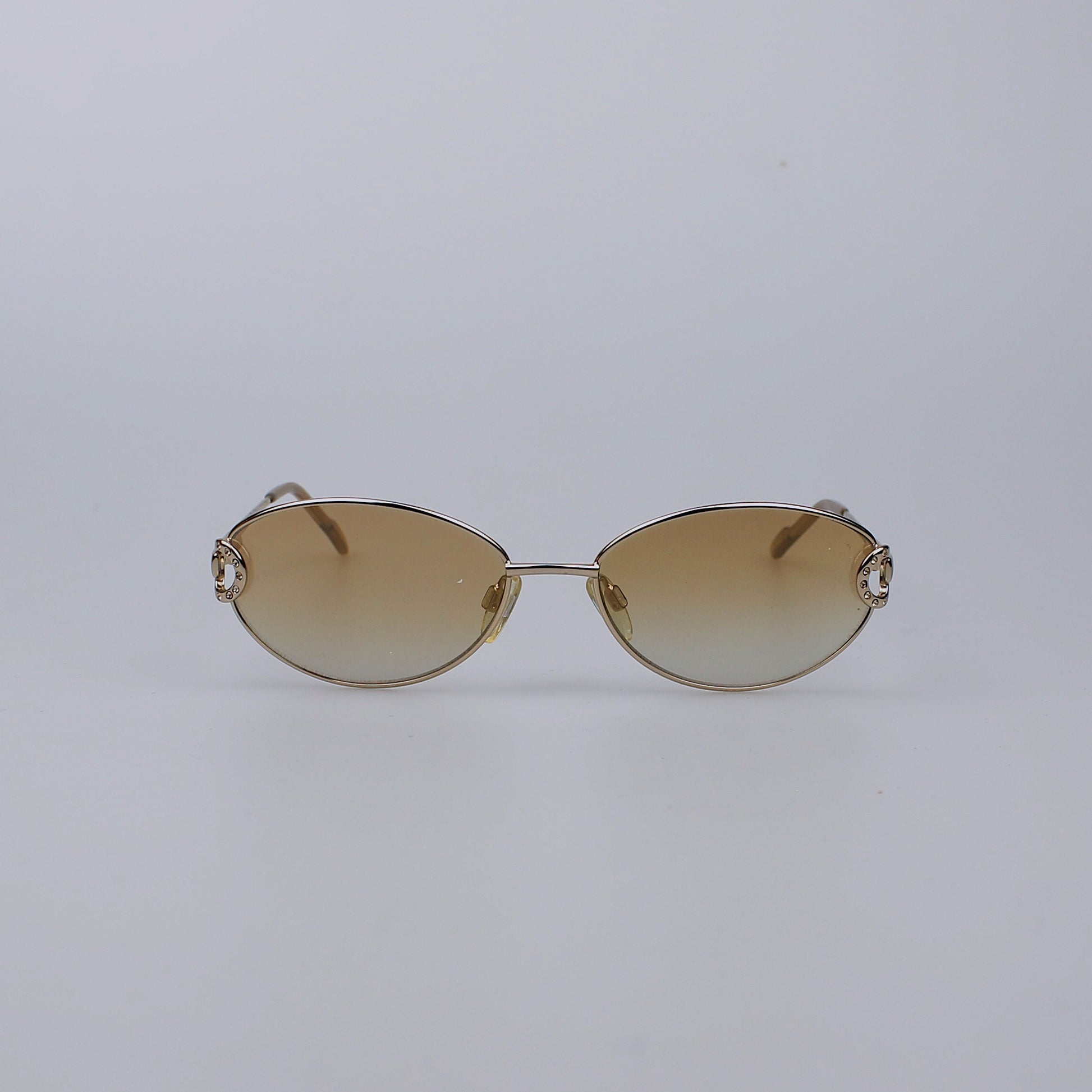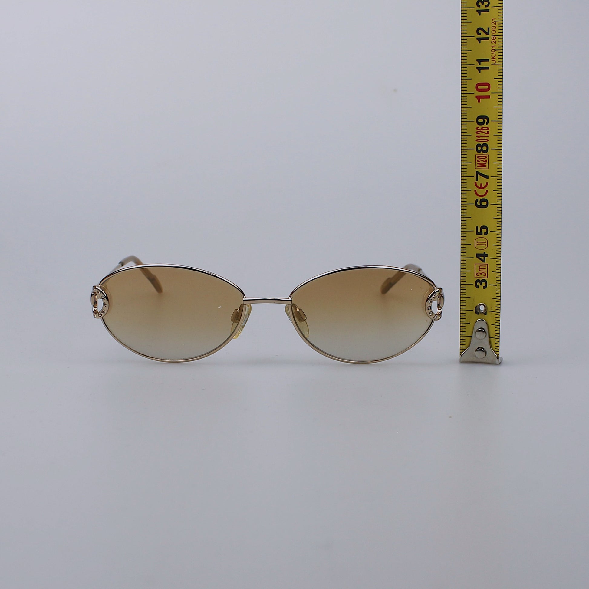Óculos de sol com armação em metal e lentes de vidro com proteção UV400.